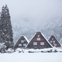 Beyond the mountains, Shirakawa-go(白川郷)rests beneath even deeper snow, its steep thatched roofs (gassho-zukuri, 合掌造り) glowing softly against the winter sky. Together, these two mountain towns embody the quiet heart of Japan’s winter — serene, enduring, and filled with gentle light.